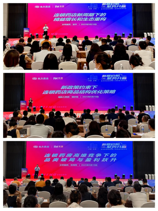 9月10日下午的论坛分为主会场和会员专场,针对不同参会群体的需求进行了精准施策。主会场上,全方药业锐连锁平台省级运营官郭伟、檀兴先生及安徽中医药大学云诊商学院金牌讲师、中医AI赋能医药零售实战专家邓大全先生分别就“品类升维战”、“连锁药店全域增长模型与战术落地密钥”及“AI中医赋能药店场景革命与客流垄断方案”等议题进行了深入剖析。他们聚焦更实战的层面,围绕目标达成、战术落地与技术创新,为大家带来一系列能直接助力下半年业绩增长的干货分享。