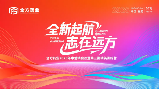 7月1日-4日,全方药业营销中心销售精英齐聚合肥总部隆重召开2025年中营销会议暨第三期精英训练营。本次大会以“全新起航 志在远方”为主题,为公司下半年销售工作推进以及终端人员能力提升注入了强大动力,并举行了意义非凡的更名仪式,开启了企业发展的全新篇章。